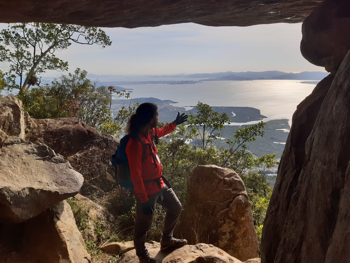 Com cerca de 1.043 metros de altitude, o cume revela uma das vistas panorâmicas mais incríveis do litoral catarinense, abrangendo a Ilha de Florianópolis, Baía Sul, praias e montanhas da região.